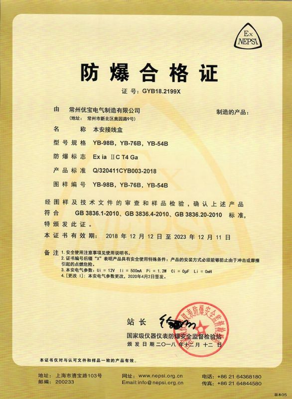 Intrinsically safe junction box explosion-proof certificate (2018-2023)